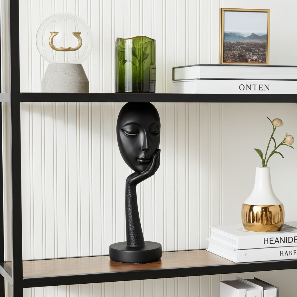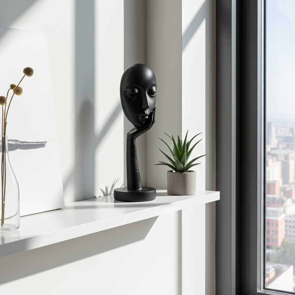 Sculpted entirely in matte black, this piece exudes sophistication and quiet strength. Its minimalist form complements modern and contemporary décor while adding emotional depth to any space. Whether placed on a console, shelf, or work desk, Silent Reflection transforms silence into style.