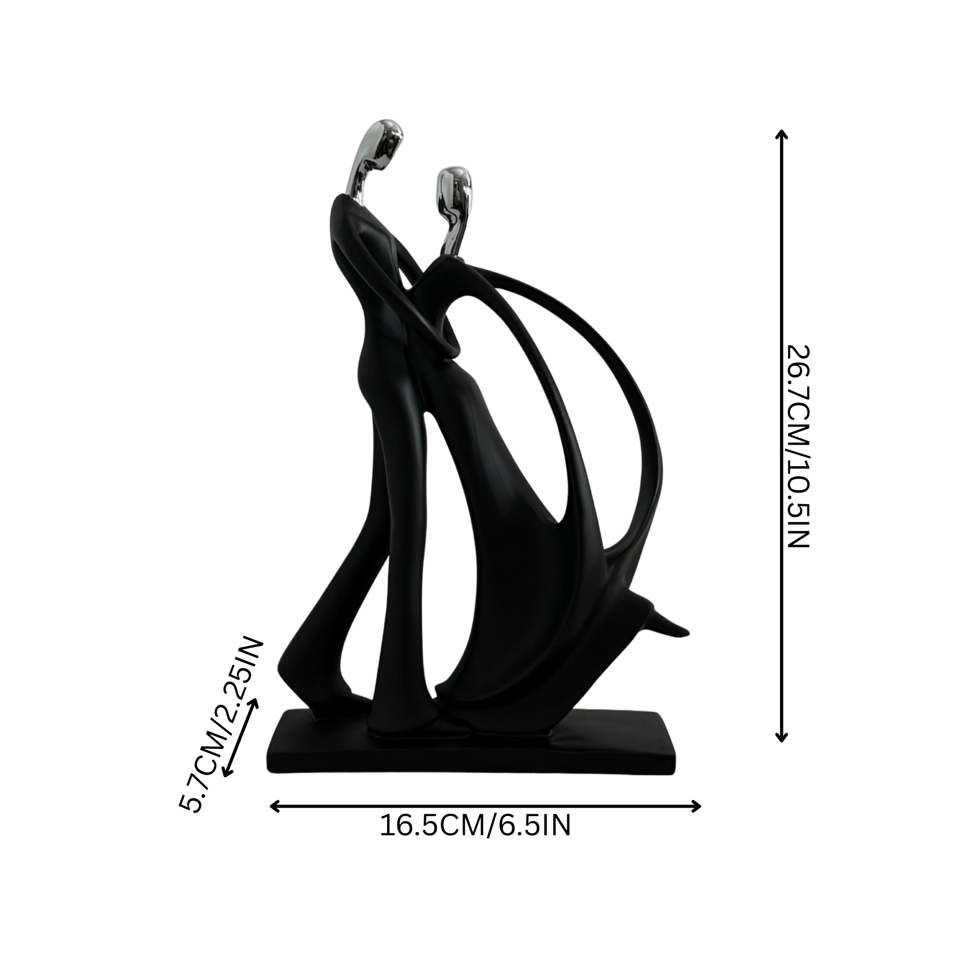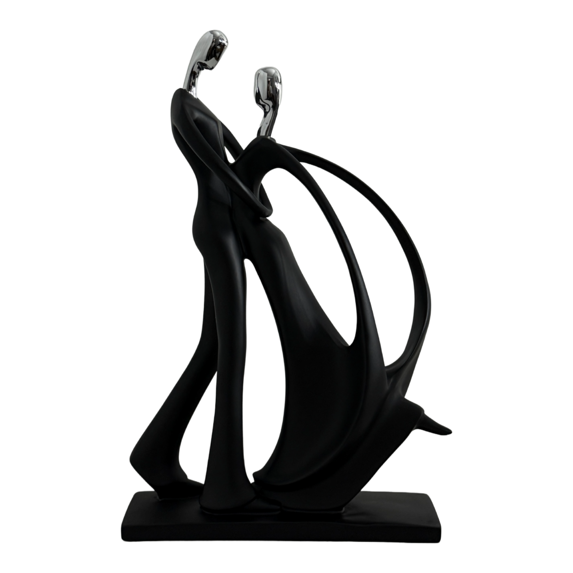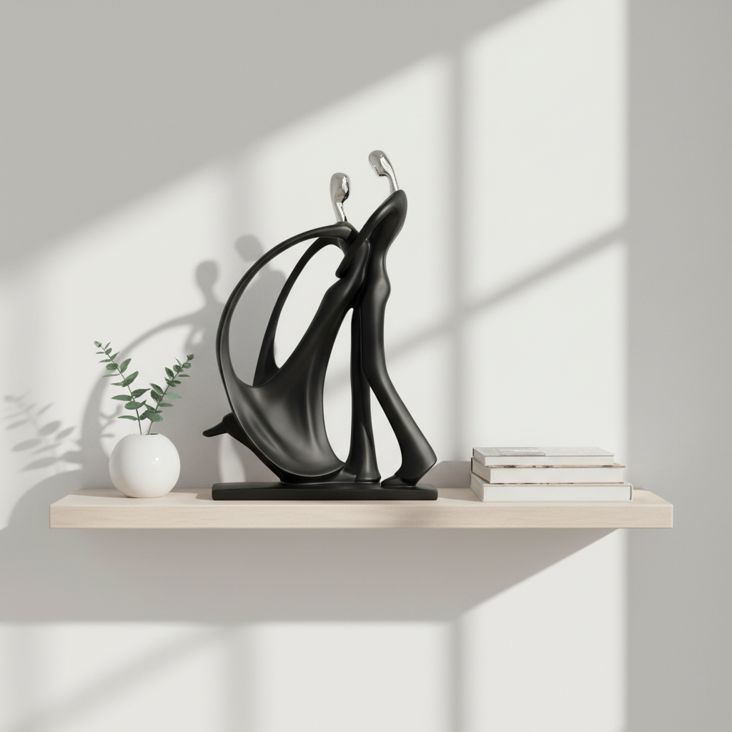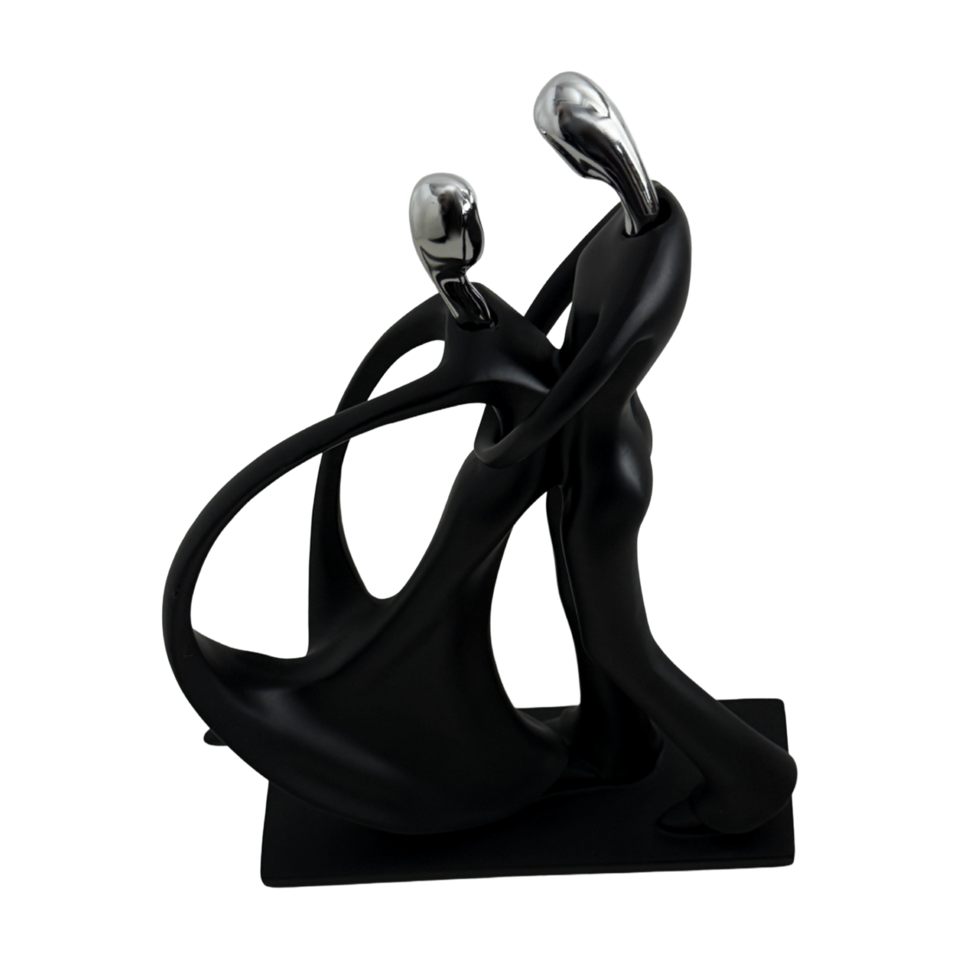A timeless symbol of connection and grace, the Eternal Embrace Sculpture captures the elegant motion of two souls intertwined in harmony. Crafted with a matte black finish and accented in silver, this abstract art piece adds modern sophistication to any space — from a chic living room to an upscale office. Its fluid lines and minimalist form evoke love, unity, and the beauty of togetherness.